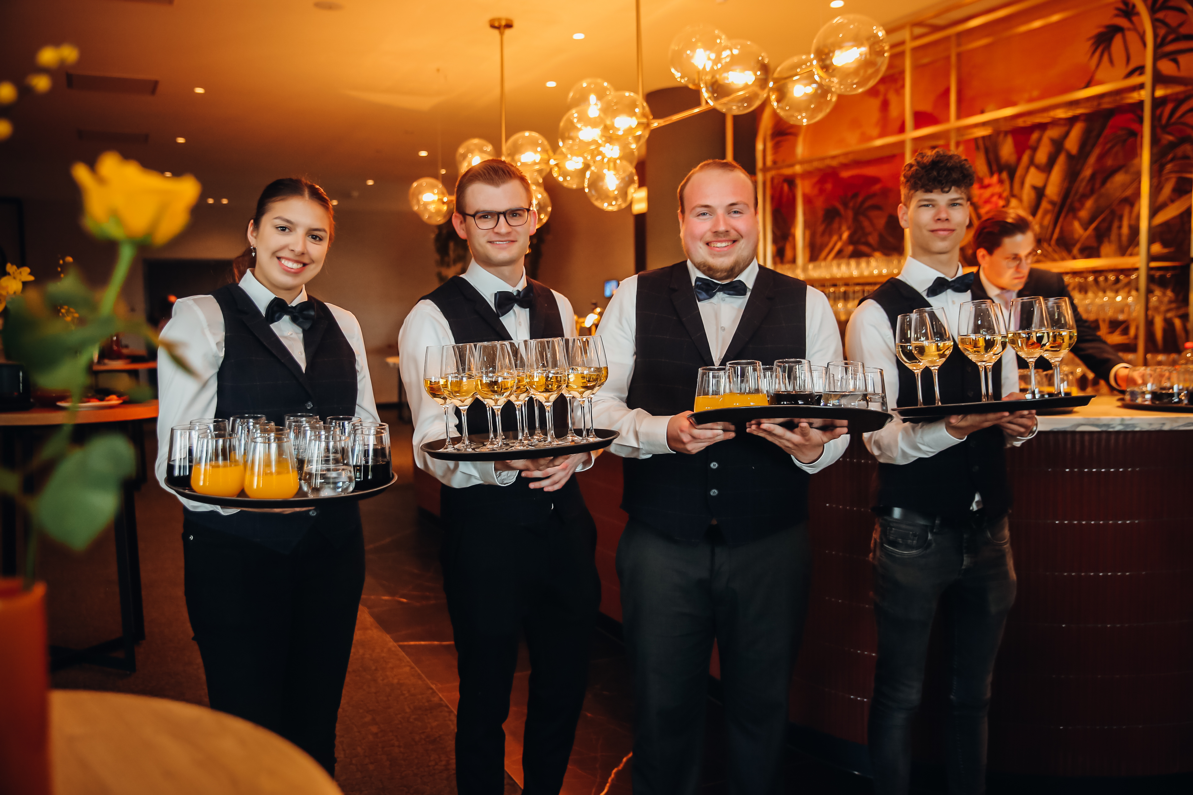 A festive atmosphere with hospitable staff members, a wide selection of beverages and tasty bites guarantee a successful party, monitored from beginning to end by our professional staff members.